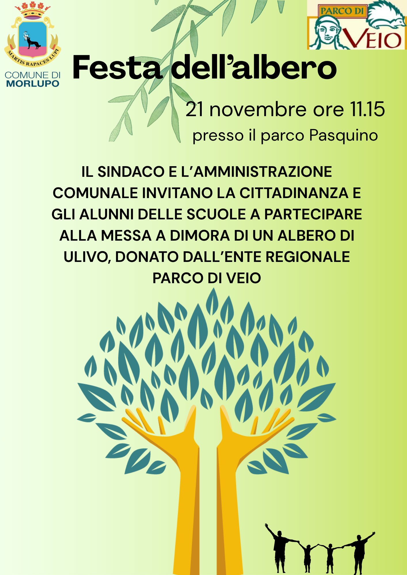 Il Sindaco e l'Amministrazione Comunale invitano la Cittadinanza e gli Alunni delle Scuole a partecipare alla messa e dimora di un albero di ulivo, donato dall'Ente Regionale Parco di Vejo.